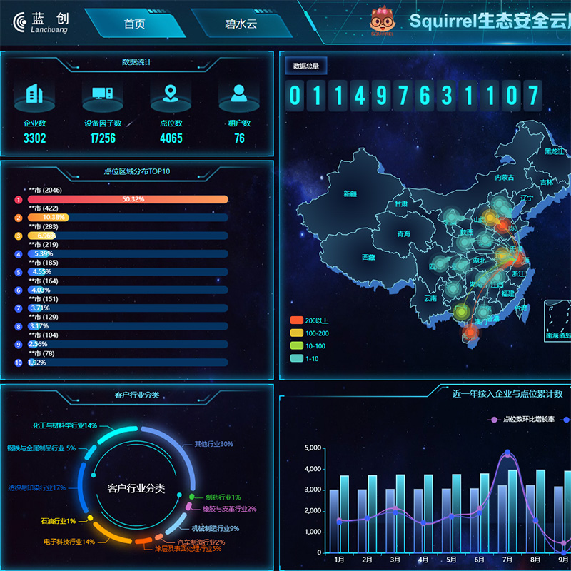餐飲油煙在線監控、柴油車OBD遠程在線監控、企業安全生產信息化等系統于一體,通過AI數據模型對海量生態安全數據進行挖掘,為生態環境監管部門、應急管理部門、